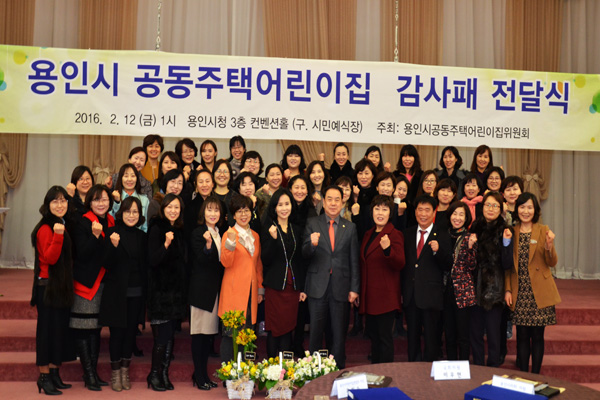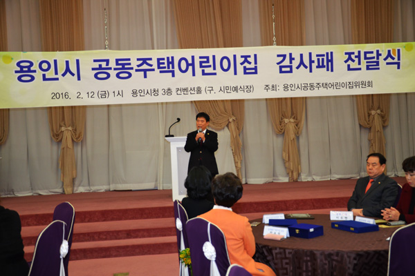 2월12일 오후1시 용인시청 컨벤션홀(구-시민예식장)에서는 용인시 공공주택어린이집 위원회(임시위원장 경희어린이집 윤은자 원장)에서, 그동안 어린이들의 보육향상과 보육정책 선진화를 위해 노력한 이우현 국회의원과 김상수 용인시의원, 목민숙 용인시어린이집연합회 회장, 한유정 삼성어린이집 원장 등에게 감사패 전달식이 있었다.