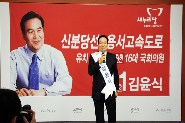 25일 오전, 김윤식 전 국회의원이 4·13 총선 용인 병 지역 예비후보 등록과 새누리당 공천 신청을 마치고 총선 출마를 공식화하는 기자회견을 했다.