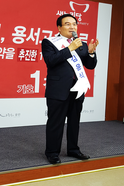 이날 김 예비후보는 출마선언문을 통해 “2000년도 제16대 4.13 총선에서, 용인 을(수지, 구성, 기흥)에서 당선되어, 수지의 난개발을 치유하고 교통난을 해소하기 위해서, 신 분당선과 수지 연장선, 용서고속도로 신설 등을 공약하고 추진하여, 모두 약속을 지킴으로써 그 동안 용인에서 약속을 지킨 전 국회의원으로 회자됨을 보람으로 느끼고 있다. 그리고 그동안 제가 청년 창업하여 38년 째 경영하고 있는 ㈜신동 에너콤의 글로벌화에 전념하여, 대통령 수행 경제인 중 성공사례 30개 기업에 선정되어, 청와대 정상경제외교 포털사이트 및 KOTRA와 경제 5단체에서 책도 발행 되어 저희 회사가 수록되어 있다.”고 말했다.