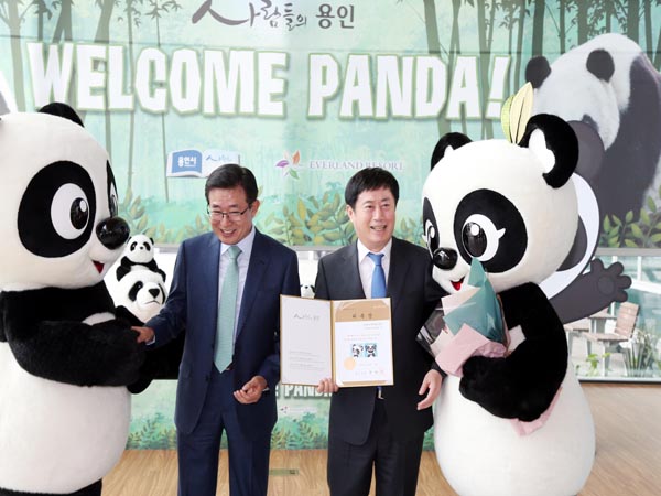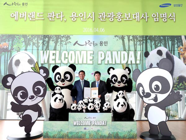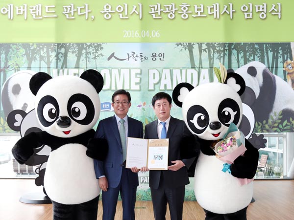 용인시는 7일 판다 인형이 있는 시청 1층 로비에서, 정찬민 시장과 김봉영 삼성물산(주)리조트 부문 사장이 참석해, 에버랜드 판다를‘용인시 관광홍보대사’로 위촉했다고 밝혔다.