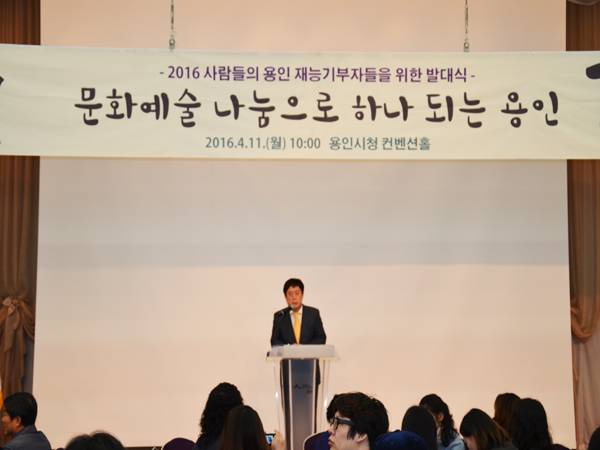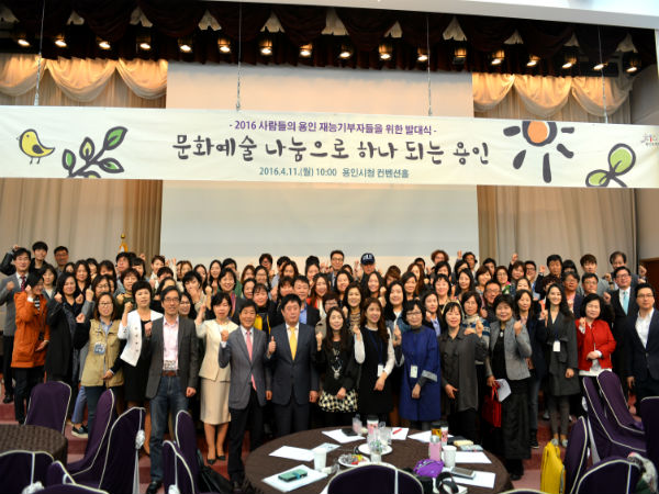 (재)용인문화재단(이사장 정찬민)은 2016년 4월 11일, 용인 시민들을 위해 문화예술 재능을 나누고자 한 자리에 모인, ‘문화예술 재능기부자들을 위한 발대식’을 용인시청 컨벤션홀에서 개최했다.