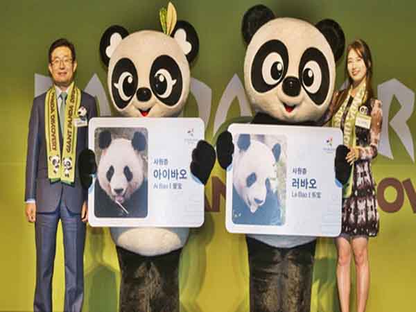 판다월드에서 생활하는 판다 한 쌍은 한중 양국간 판다 공동 연구를 위해 지난달 3일, 중국으로부터 2,400km를 날아온 암컷 아이바오(爱宝)와, 수컷 러바오(乐宝) 커플이다.