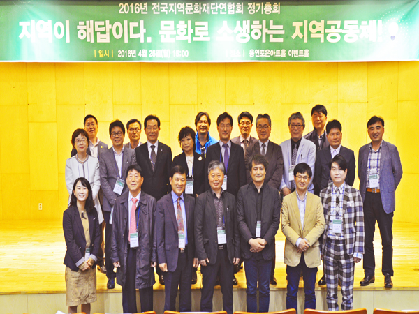 4월 25일 오후 3시 용인포은아트홀에서 열린 이번 정기총회는, 각 지역의 문화재단 대표이사를 포함한 관계자 50여 명이 참석했으며, 신규 임원 선출 및 신규 운영위원회 조직에 관한 건 등을 포함한, 2016년 사업 계획 등에 대한 안건이 논의되었다.