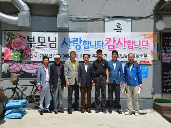 지난 8일 제 44회 어버이날을 맞아 용인시 처인구 김량장동 용인농협 옆에자리한 흑돈연가(대표 이덕주)에서는, 지역의 어르신들 약200여명에게 따뜻하고 맛있는 점심식사를 대접하고, 용인농협 (조합장 조규원)에서는 용인농협 주부봉사단과 직원들이 대거 경로잔치에 참여하여 봉사활동을 펼쳤으며, 점심식사를 마친 어르신들에게 농협직원들이 선물을 증정하기도 했다.
