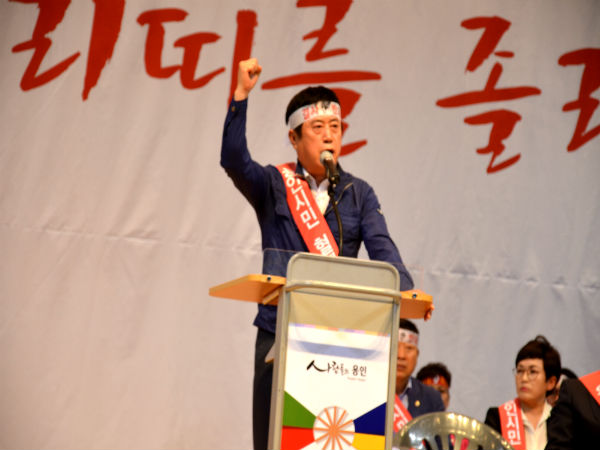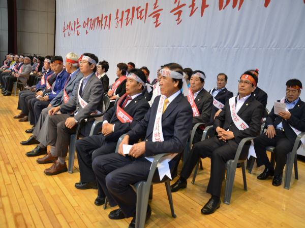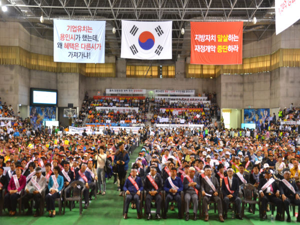 이날 궐기대회에는 정찬민 용인시장과 신현수 용인시의회 의장. 김민기. 이상일. 백군기 국회의원과 경기도의원, 용인시의회 의원 등과 사회 단체회원들과 시민들이 대거 참여했다.