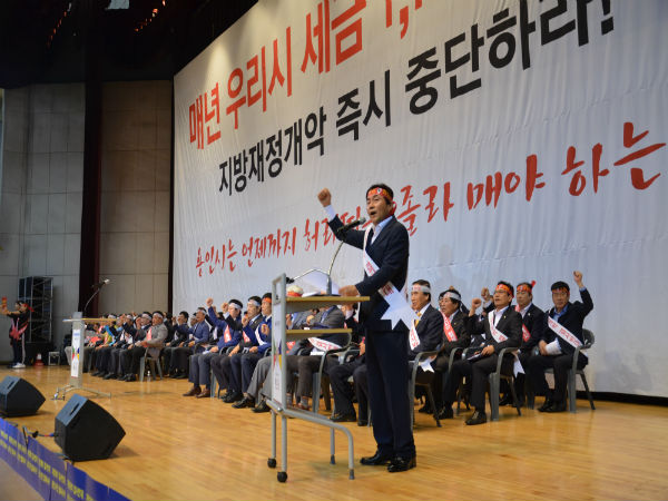 한편 궐기대회에 참여한 신체장애인복지회 용인시지부 권오선 지부장은 “지부 산하 13개 단체 회원 500여명이 모두 이날 궐기대회에 참석했다” 며 “중앙정부가 복지 증진을 위해, 재정을 도와주지는 않고 세수를 빼앗아 간다면, 용인지역 장애인들의 현실을 무시하고 어려움을 가중시키는 것“이라고 강조했다.