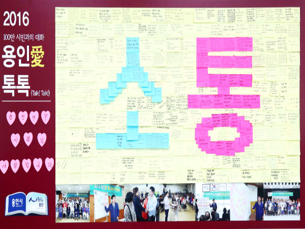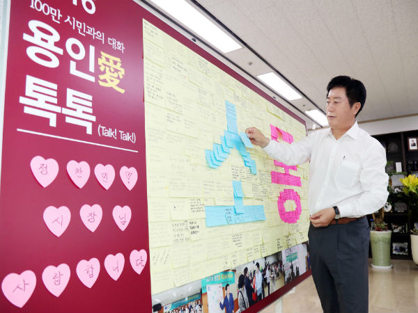 글자에 사용된 포스트잇은 모두 400여개. 정 시장이 지난 5월 100만 시민과의 대화를 실시하면서, 주민들이 민원을 써낸 포스트잇을 모아 붙였다.