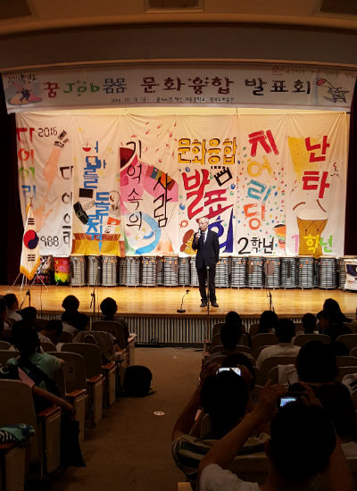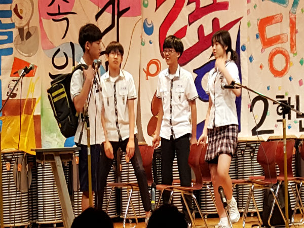오전 10시, 이성옥 교장선생님의 축사에 이어 기흥중학교 ‘2016학년도 문화융합 발표회’가 선생님들과 학부모들이 참석한 가운데 한창 진행되고 있었다.