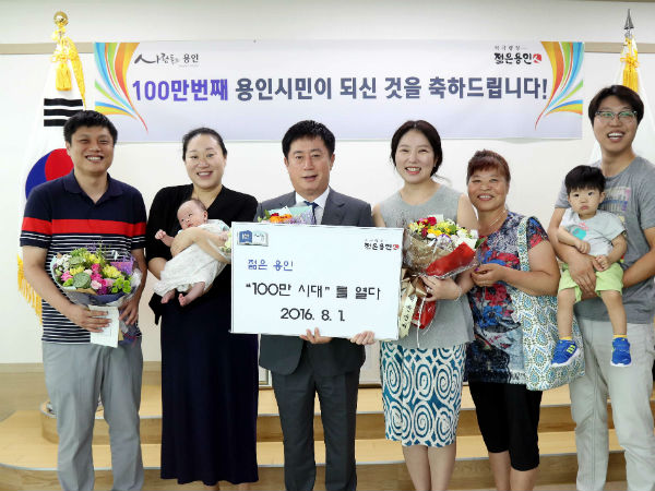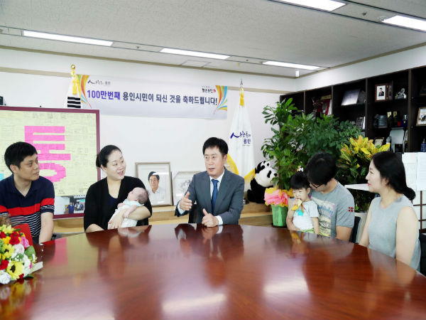 정찬민 시장은 2일 오후 이들 두 가족을 시장실로 초청해, 100만번째 용인시민이 된 것을 축하했다.