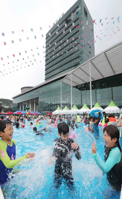 아이들의 여름 피서지로 각광을 받았던, 용인시청 물놀이장이 30일간의 운영을 마치고 21일 문을 닫았다. 마지막 날인 이날에도 물놀이장에는 1만여명의 어린이와 부모들이, 문을 닫는다는 소식에 아쉬워하며 물놀이를 즐겼다.