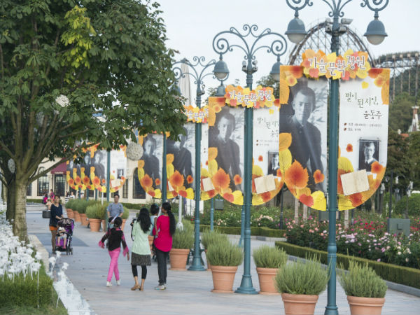 먼저 60만 송이 가을 장미가 만발한 에버랜드 장미원은, 내년 탄생 100주년을 앞둔 민족시인 윤동주에 대해, 생생하게 체험할 수 있는 '가을 문학정원'으로 변신했다. 에버랜드의 강점인 자연에 문화를 접목시킨 '가을 문학정원'은 윤동주 시인의 삶과 예술 세계, 대표 작품들을 사진, 영상, 캘리그라피, 컨버전스 아트 등 다양한 형태로 만나 볼 수 있다.