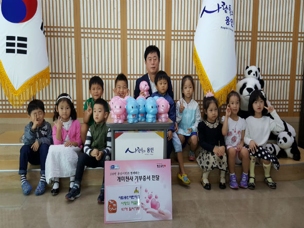 이날 돼지저금통 전달식에는 전재영 복지여성 국장과 시립 용인어린이집 김경미 원장 등도 함께 참석 하였다.