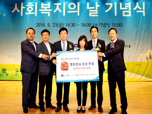 용인시는 23일 시청 에이스 홀에서 열린 ‘사회 복지의 날’ 기념식에서, 개미천사 기부운동으로 모은 기금의 일부를, 희귀 난치성 아동 12명과 저소득층 28가구 등 40명에게 총 1억1,459만원을 전달했다고 밝혔다.