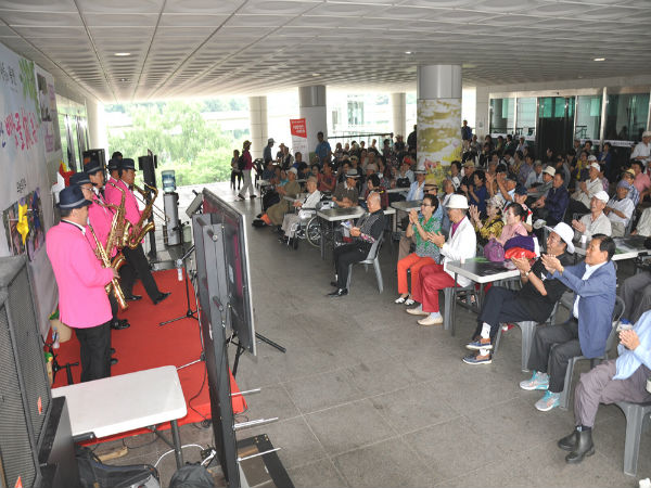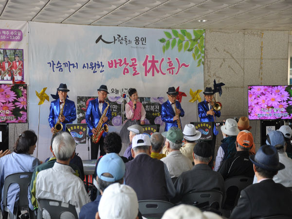 용인시처인노인복지관(관장 김기태)에서는, 2016년 10월 14일(금) 용인시 문화 복지 행정타운 내, 가장 시원한 휴식공간인, 바람 골 休(휴)에서 폐장 공연를 실시했다.