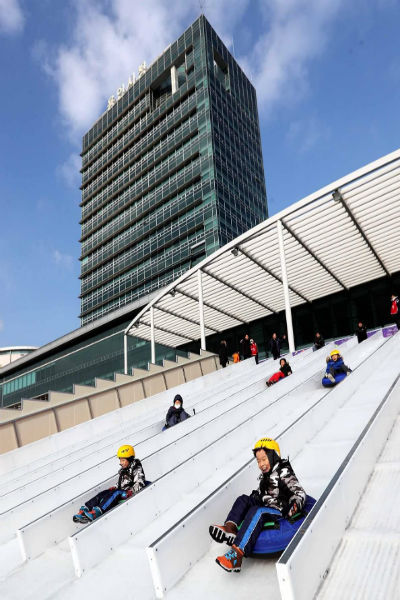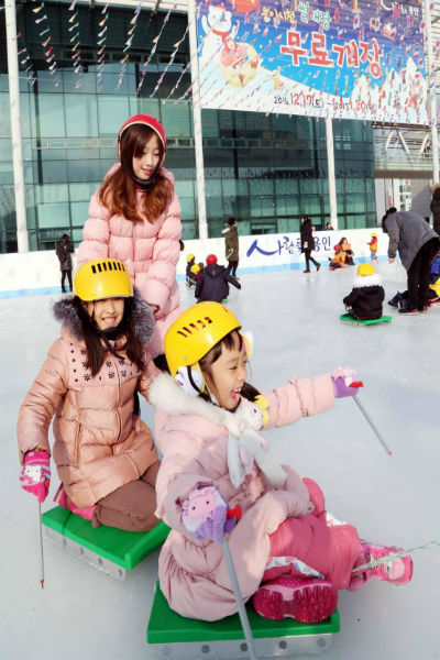 올해 썰매장은 앉아서 얼음 위를 지칠 수 있는 가로 30m× 세로 50m 크기의 얼음 썰매장과, 38m 길이의 튜브 썰매장 등, 2개로 구성됐다.