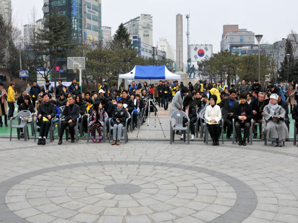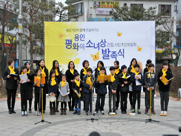 2011년 12월 14일, 천 번째 수요시위를 맞이하며 서울 종로구 일본대사관 앞에 처음 ‘평화의 소녀상’이 세워진 이래로, ‘전쟁 범죄’인 일본군 ‘성노예’ 문제를 기억하기 위한 ‘평화의 소녀상’이 전국 곳곳에 세워지고 있는 가운데, 용인에서도 지난 2월 8일 ‘용인 평화의 소녀상 건립 시민 추진위원회’가 꾸려진 후, 3.1절을 기념하여 2일 오후2시에 용인 처인구에 위치한 통일공원에서 발족식을 개최하였다.