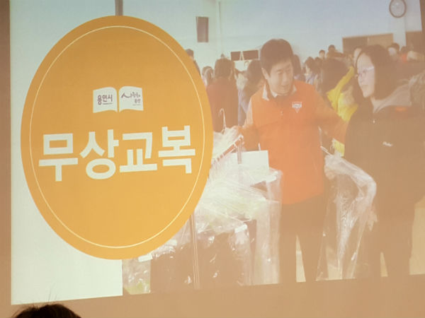 무상교복을 위한 재원마련에 대해 정 시장은 지난해말 용인시가 채무제로를 달성해 복지제도 확대가 가능해졌다는 점을 강조했다.