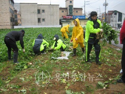 용인시 기흥구 서농동은 지난 11일 관내 휴경지(1,265㎡)에서 수확한 알타리 무로 김장을 담궈 관내 기초생활수급자, 독거노인, 관내 경로당 등 52곳에 전달했다.