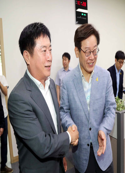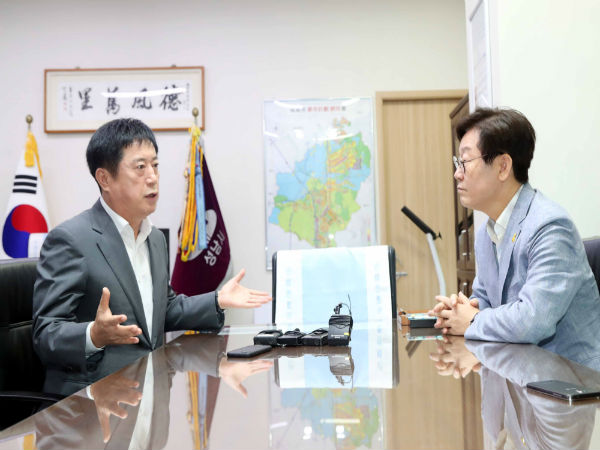 정찬민 용인시장은 이날 오전 성남시청 시장실로, 이재명 시장을 방문, 40여분동안 무상 교복 등 문화와 복지정책에 대해 폭넓은 의견을 나눴다.