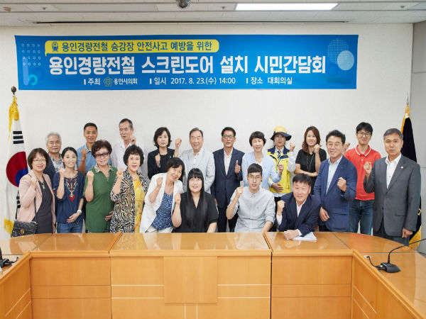 용인시의회(의장 김중식)는 23일 대회의실에서, 용인 경전철 승강장 안전사고 예방을 위한 용인경전철 스크린도어 설치 시민 간담회를 개최했다.