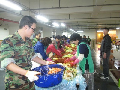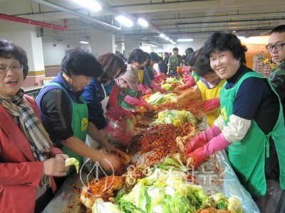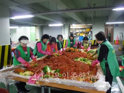 용인시 처인구 동부동 새마을부녀회(회장 나혜숙)는 어려운 이웃의 따뜻한 겨울나기를 돕기 위해 지난 11일 30여명의 회원들이 참여한 가운데 사랑의 김장나누기 행사를 동주민센터 지하주차장에서 열었다.