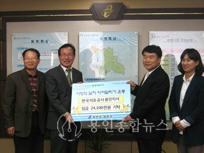 처인구 호동에 위치한 (주) 한국석유공사 용인지사는 1998년에 설립된 이후 지금까지 지속적으로 어려운 이웃을 위해 각종 물품을 지원해 왔다.