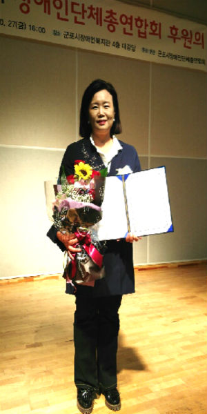 ‘군포시 장애인단체 총연합회’는 제9회 장애인 후원의 날을 맞이하여, “정윤경 의원은 군포시 장애인 복지증진과, 권익신장에 남다른 애정으로 헌신했고, 아름다운 공동체 만들기에 타의 모범이 되었다”고 수상이유를 밝혔다.