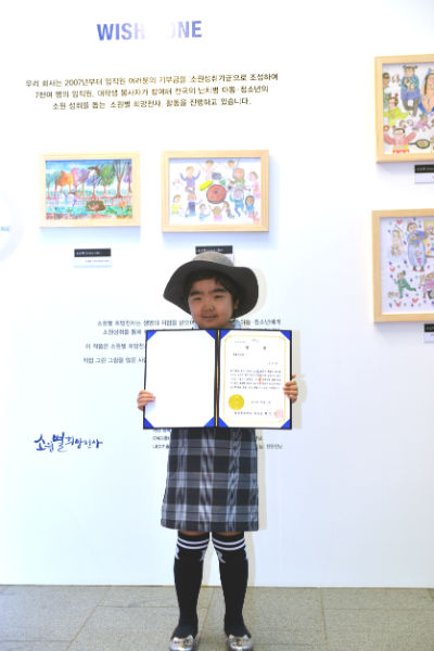 (재)용인문화재단(이사장 정찬민)은 ‘2017년 삼성전자와 함께하는 용인 & 화성 미술작가 초대전’ 마지막 날인 11월 3일, 삼성전자 화성캠퍼스 DSR동 전시장에서 펼쳐진 삼성전자 ‘소원별 희망천사’ 행사에서, 용인 수지구에 거주하고 있는 조은혜(8세) 양에게 재단 이사장 명의의 ‘특별작가상’을 수여했다.