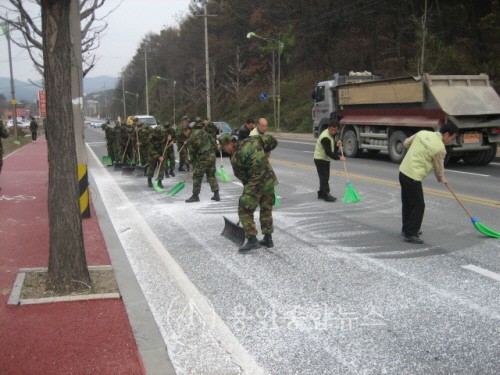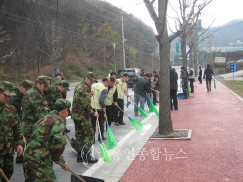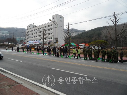 용인시(시장 김학규)가 겨울 재해 예방에 총력을 기울이기로 하고 15일 오후 2시부터 4시까지 처인구 삼가동 일원에서 민·관·군 합동 제설 모의 훈련을 실시했다.