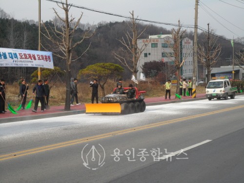 용인시 관계공무원들을 비롯해 55사단 5171부대, 용인동부경찰서, 용인소방서, 용인도시공사 관계자, 용인시민들로 구성된 용인시자율방재단 등 100여 명의 참가자들이 처인구 삼가동 용인대 입구에서 적설량 20cm 대설경보 가상 상황 설정 후 실제 상황과 같은 모의 훈련을 전개했다. 염화칼슘 자동살포 차량, 다목적 차량 등의 장비 10여 대가 동원됐다.