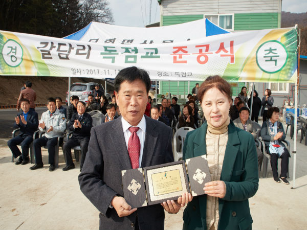 이건영 의원은 “독점교 준공이 지역 소통을 통해, 독점마을 뿐만 아니라 인근 마을도 발전할 수 있는 계기가 되길 바란다.”며“특히 이번 감사패는 주민들이 주신 것이라 더욱 의미가 남다르다”고 소감을 전했다.