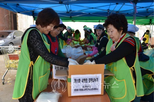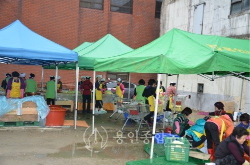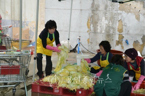 18일 오전 용인농협(조합장 조규원)김량장점 앞마당에서 ‘제11회 사랑의김장나누기’행사를 용인농협(여성임원,고주부,부녀회,농촌사랑봉사단)부녀회원 40여명과 농협용인 관계자들이 함께 힘을 모와 배추1,000포기를 김장을 하는 행사를 가졌다.