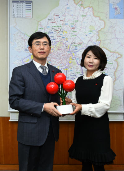 이날 김진흥 경기도 행정2부지사는 경기도청 북부청사 공직자들을 대표해, 김경희 사회복지공동모금회 경기북부사업본부장으로부터, ‘사랑의 열매’를 전달받고, 이웃사랑 실천의 모범을 보였다.
