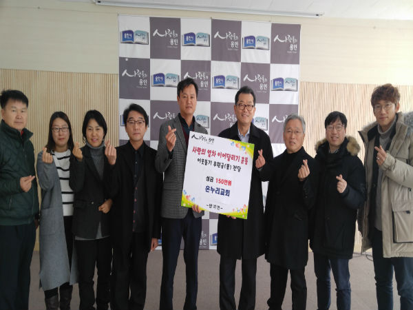 용인시 처인구 양지면은 27일 양지온누리교회에서, 이웃돕기에 써달라며 성금 150만원을 기탁했다고 밝혔다.