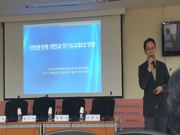 양근서위원장은 정부는 1987년 헌법체제를 타파하고 새로운 국가경영의 패러다임으로 강력한 지방분권 개헌을 적극적으로 추진하여야 한다고 강조하면서, 지방정부의 자치입법, 자치재정, 자치조직, 주민자치결정권 강화를 4대 원칙으로 한 경기도의회 헌법개정 지방분권위원회가 마련한 개헌안을 소개하였다. 이필구 경기도YMCA협의회 운영위원장은, 자치분권이 성공적으로 정착하기 위해서는, 지역의 주인인 주민들의 자치가 활성화되어야 하고, 이를 위해서는 민주시민교육이 결합되어 주민역량이 강화되도록 해야 한다고 하였다.