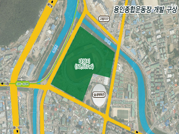 공사는 이번 계획에서 종합운동장 일대 시유지 가운데, 2003년 개관한 용인실내체육관은 존치하고 족구장, 인라인스케이트장 등은 개발대상에 포함했다.