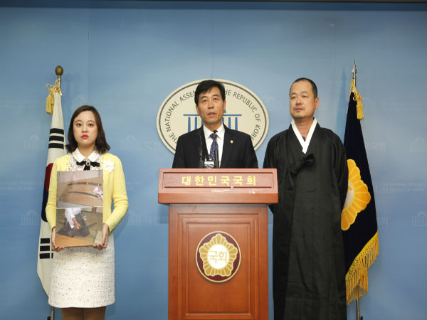 김 의원은 이날 오전 11시, 국회 정론관에서 문화재 제자리 찾기 혜문 대표와 함께 기자회견을 열고, 히젠도 처분 촉구 결의안 발의 소식을 전했다.