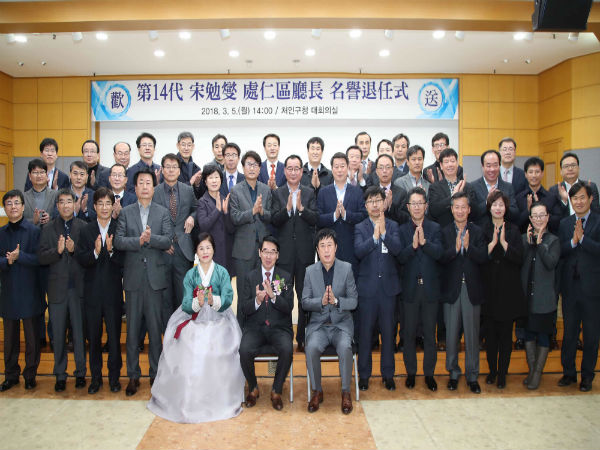 이날 처인구청 대회의실에서 열린 송 구청장 명예퇴임식에는, 정찬민 용인시장과 처인구 지역 도ㆍ시의원, 가족·친지, 직원 등 200여명이 참석했다.