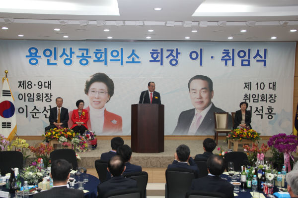 3월 12일 용인상공회의소 회장 이·취임식이, 정찬민 용인시장, 김중식 용인시의회의장, 최신원 경기도 상공회의소 연합회 회장과 기업인, 그리고 사회단체장 등 200여명이 참석한 가운데 거행 되었다.