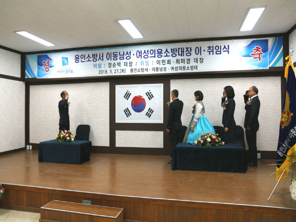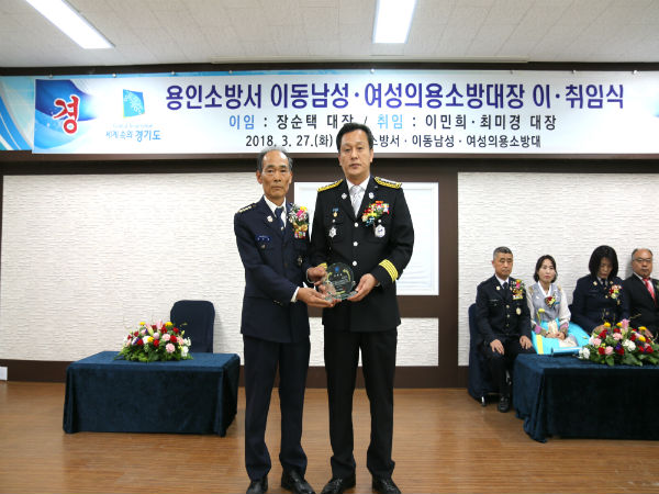 용인소방서(서장 조창래)는 지난 27일, 용인시 이동읍사무소에서 장순택 의용소방대장 이임식과 이민희,최미경 의용(여성)소방대장 취임식을 개최했다.