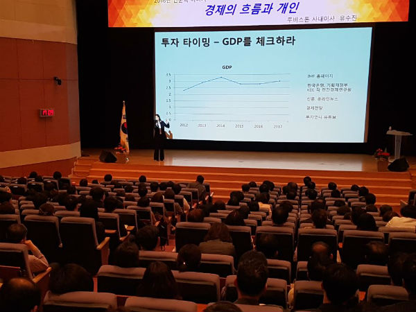 이날 유수진 루비스톤 이사는 ‘경제의 흐름과 개인’이라는 주제 강연을 통해, 글로벌 시대에는 국민 모두가 세계경제 흐름에 많은 영향을 받는 만큼, GDP 등 경제지표를 꾸준히 학습할 필요가 있다고 강조했다.
