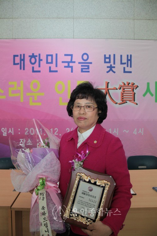 용인시의회 박남숙 의원이 지난 2일 백범김구기념관에서 인터넷언론사가 주관하는 ‘대한민국을 빛낸 자랑스러운 인물 대상’에서 기초의회부문 대상에 선정되는 영광을 안았다.