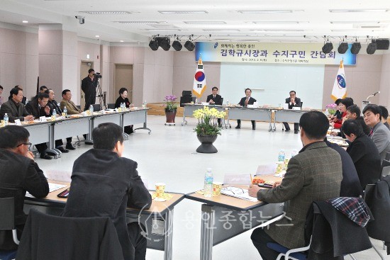 김학규 용인시장이 9일 상생과 화합의 소통신뢰행정 강화를 위한 2012 주민간담회에 참석, 지역 현안에 대해 주민의견을 청취하고 함께하는 행복한 용인 사업 추진에 최대한의 시정 역량을 집중해나가겠다고 밝혔다.