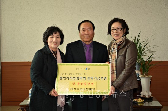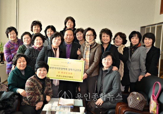 22일 오후 용인시민장학회 사무실에서 신갈농협 여성대학 18기 기수별 회장단들이 방문하여 장학금으로 써 달라며 십시일반 모은 81만원을 김기원 이사장에게 전달했다.