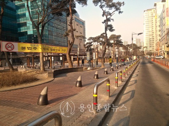 사람과 차가 거의 안다니는 소공원 옆 인도에 용인시는